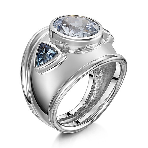 To maintain the soft, violet-blue palette of the main sapphire, it has been paired with two matching sapphire trillions. The three stones are set in durable platinum, which provides a bright, strong foundation for daily wear. This piece celebrates the raw, unadulterated beauty of natural gemstones, focusing on subtle tonal harmonies rather than high-contrast sparkle.