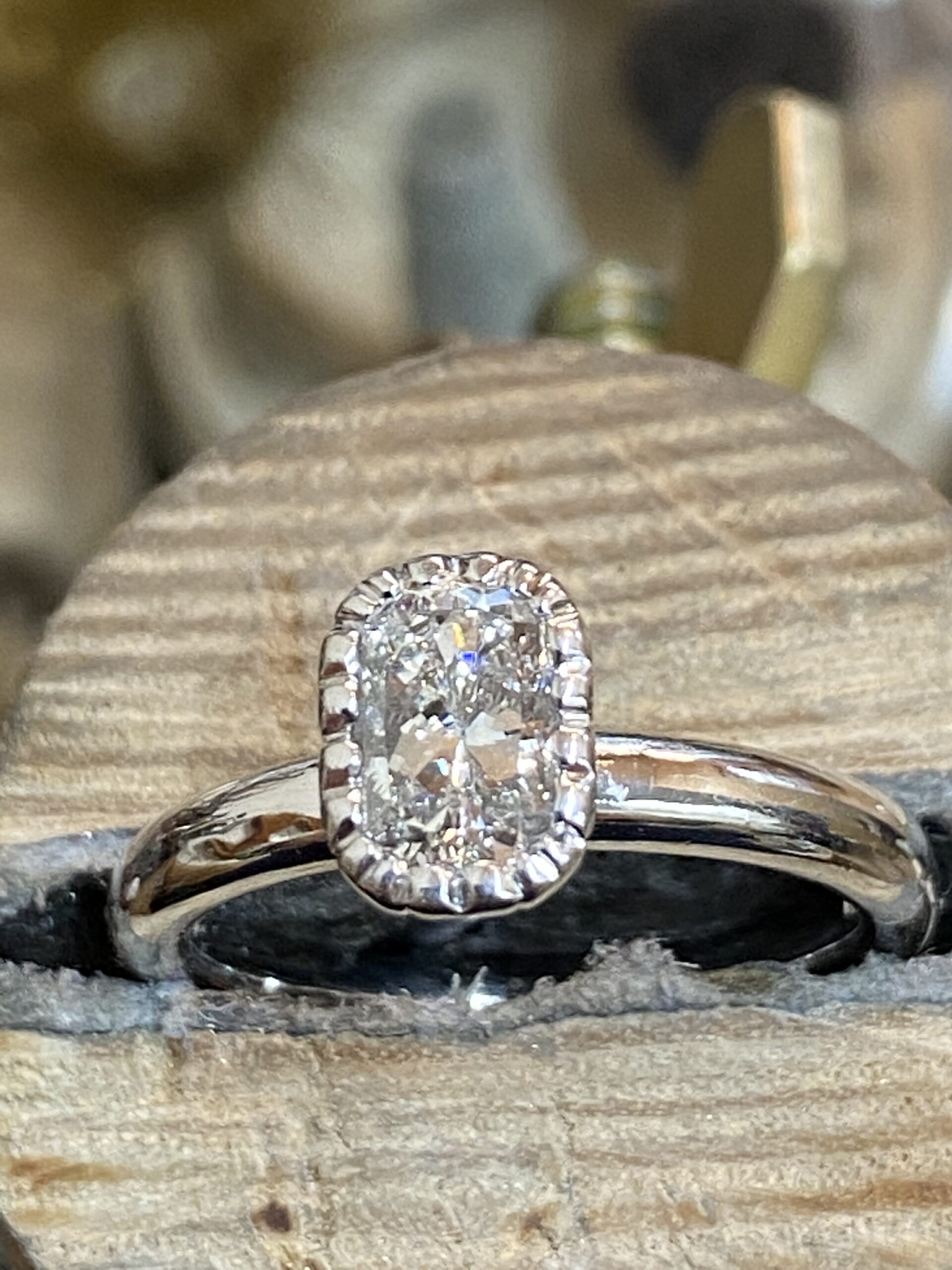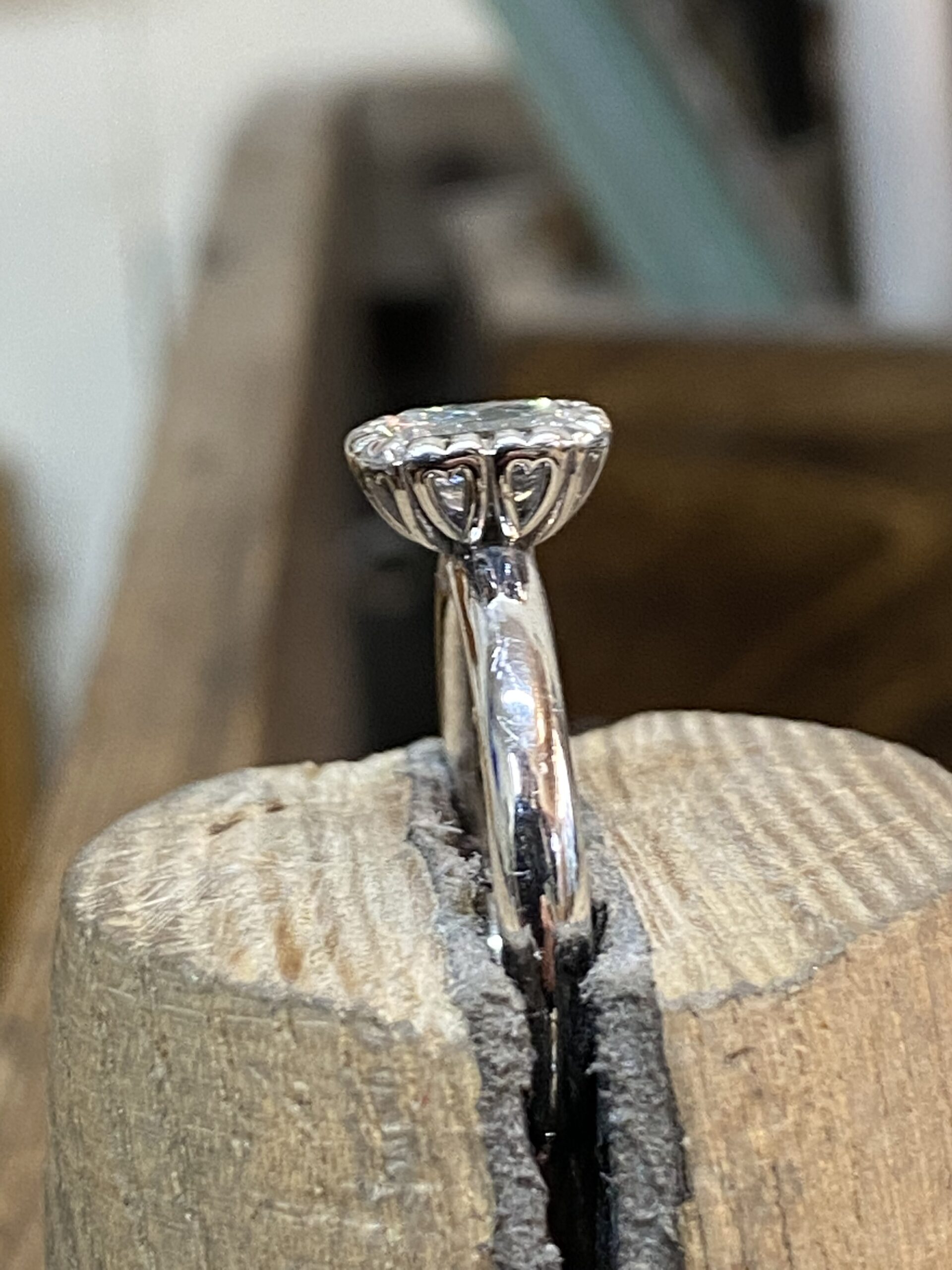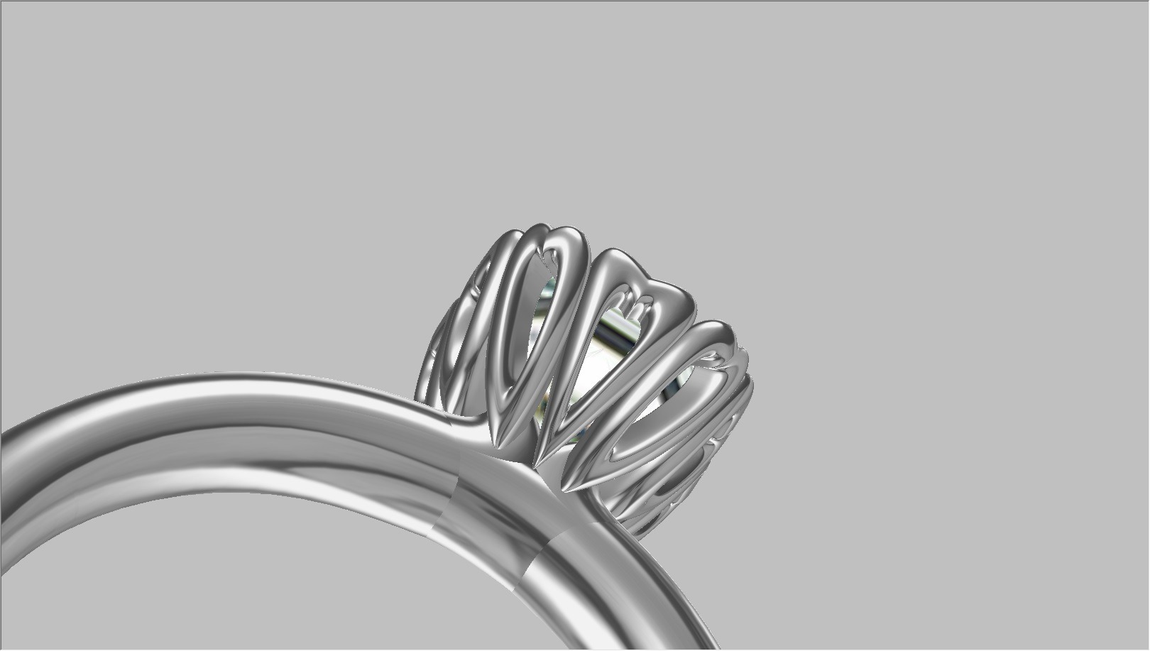 The central diamond is a D-colour, flawless specimen, held within a platinum setting that utilises elongated, heart-shaped apertures. This open-work structure is a technical choice, allowing a high degree of light to enter the pavilion of the stone and maximise its fire. The band is finished with a rounded profile for ergonomic comfort, ensuring the piece is suited for daily wear without compromising its architectural integrity. The neutral lustre of the platinum provides a seamless visual transition to the icy clarity of the diamond, resulting in a composition focused entirely on optical precision and contemporary craft.